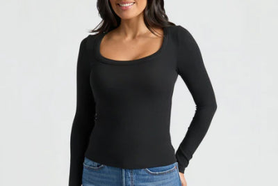 Ribbed Long Sleeve Scoop Neck