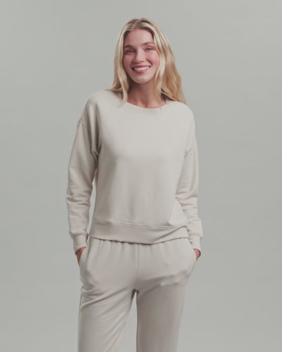 Your go-to lounge set. The ultra-soft Slouch Pullover Crew and Relaxed Joggers combine easy stretch, lightweight warmth, and a polished fit—perfect for school drop-offs, coffee runs, or weekend lounging.
